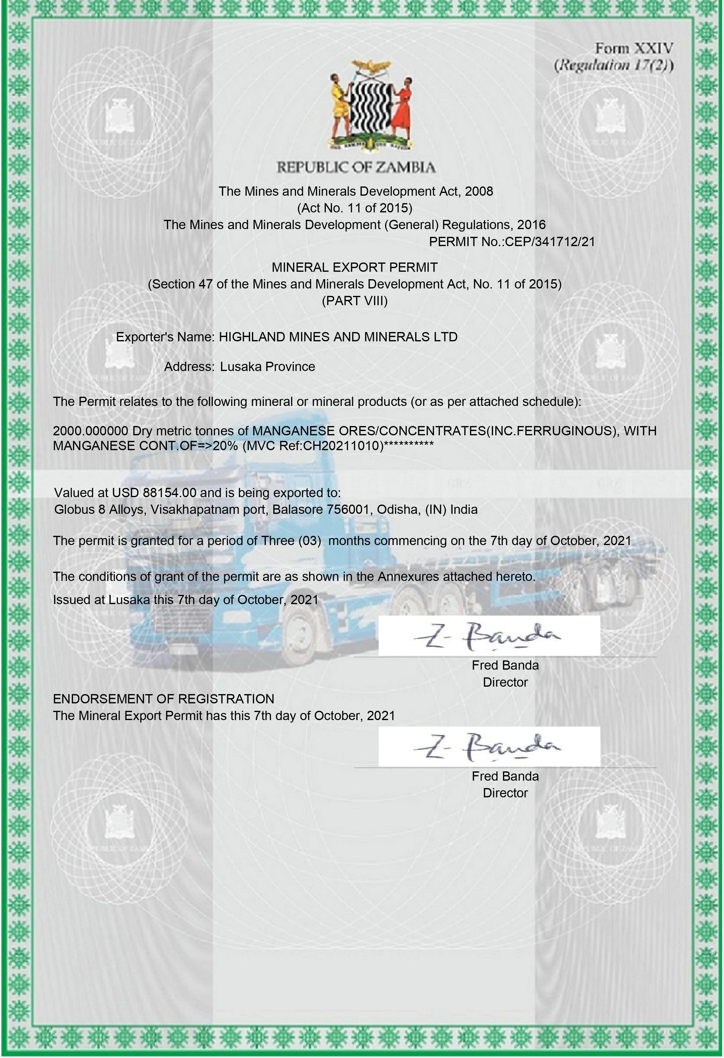 High grade Mn Ore is exported from port of Dar es Salaam, Tanzania. The company has well established logistic and transportation solutions, sending manganese ore from our warehouse to port. So far we have exported three parcels of manganese ore.